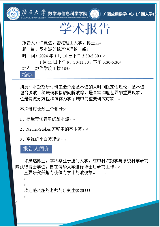 学术报告:Nonlinear stability for multi-dimensional wave patterns