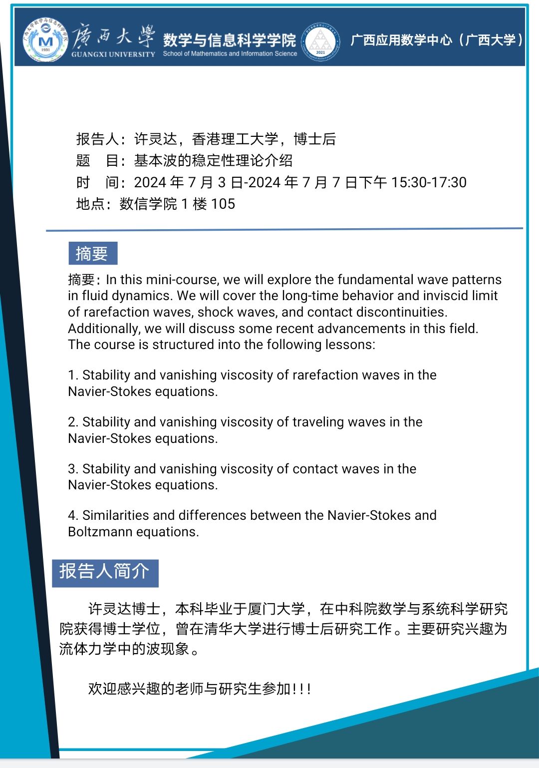学术报告:基本波的稳定性理论介绍