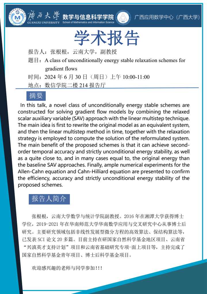 学术报告:A class of unconditionally energy stable relaxation schemes for gradient flows