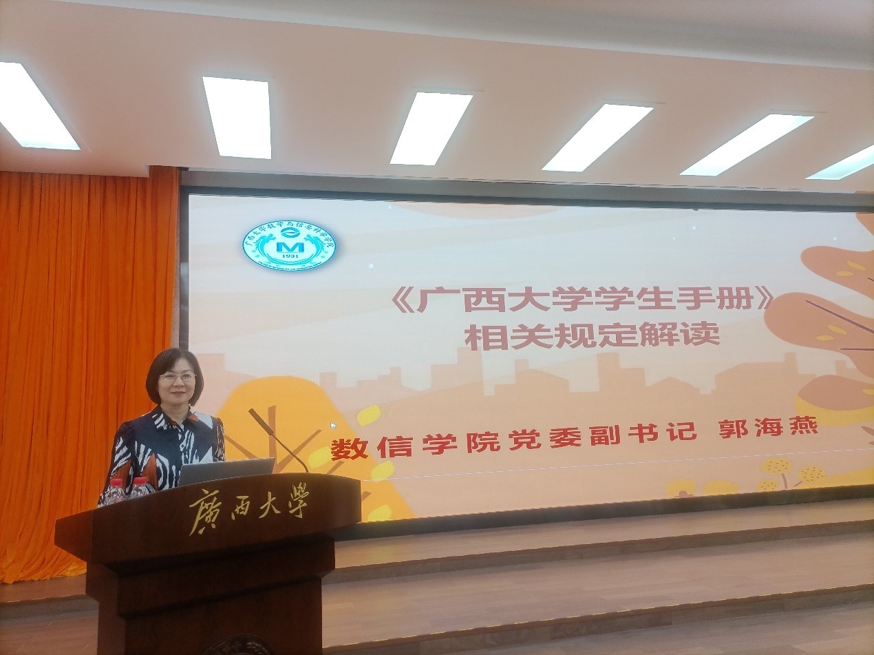 郭海燕副书记重点讲解了学生宿舍管理规定、学生考试违规处理办法、课程考勤制度、校园安全规范等亚洲色吧