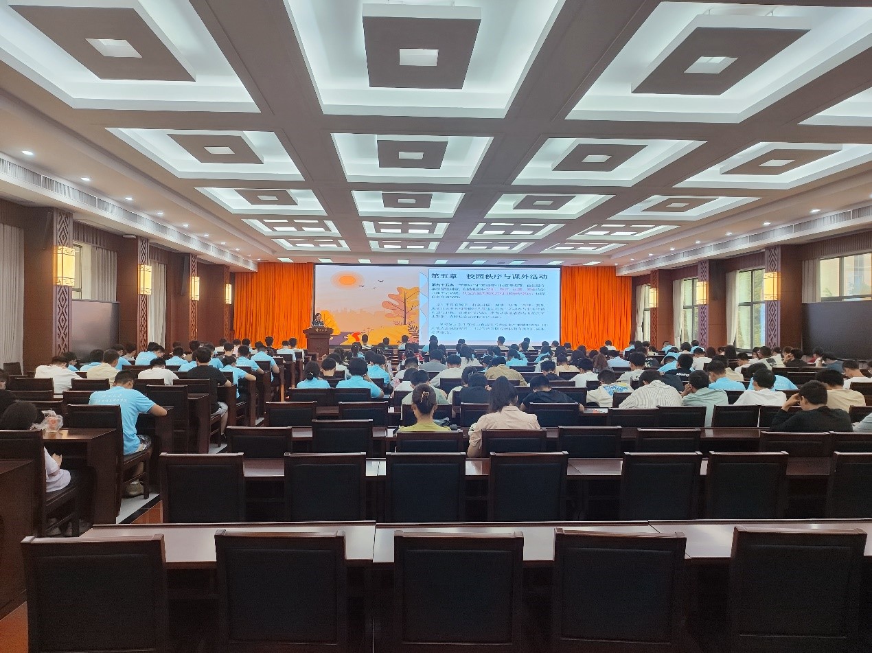 学生系列规章制度,并结合实际案例强调了遵规守纪的重要性,鼓励同学们严明纪律端正作风,遵守规则促进成长,树立正确的世界观、人生观和价值观。