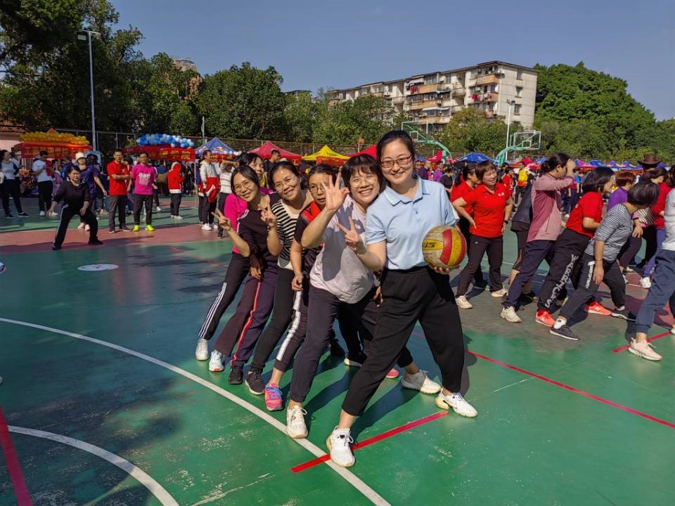 覃宪儒书记、郭真华院长带领大家一起篮球接力