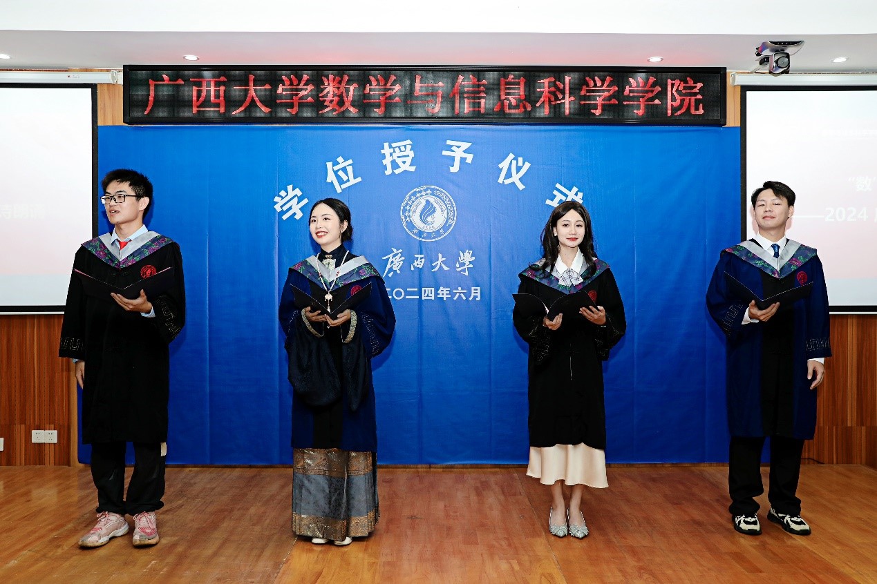 仪式结束后,数信学院为2024届毕业生们举行了“数青春”毕业欢送会。诗朗诵、切蛋糕、把歌唱、同拍照……毕业生们用各种形式表达着对学院、学校的无限感恩和深情祝福。