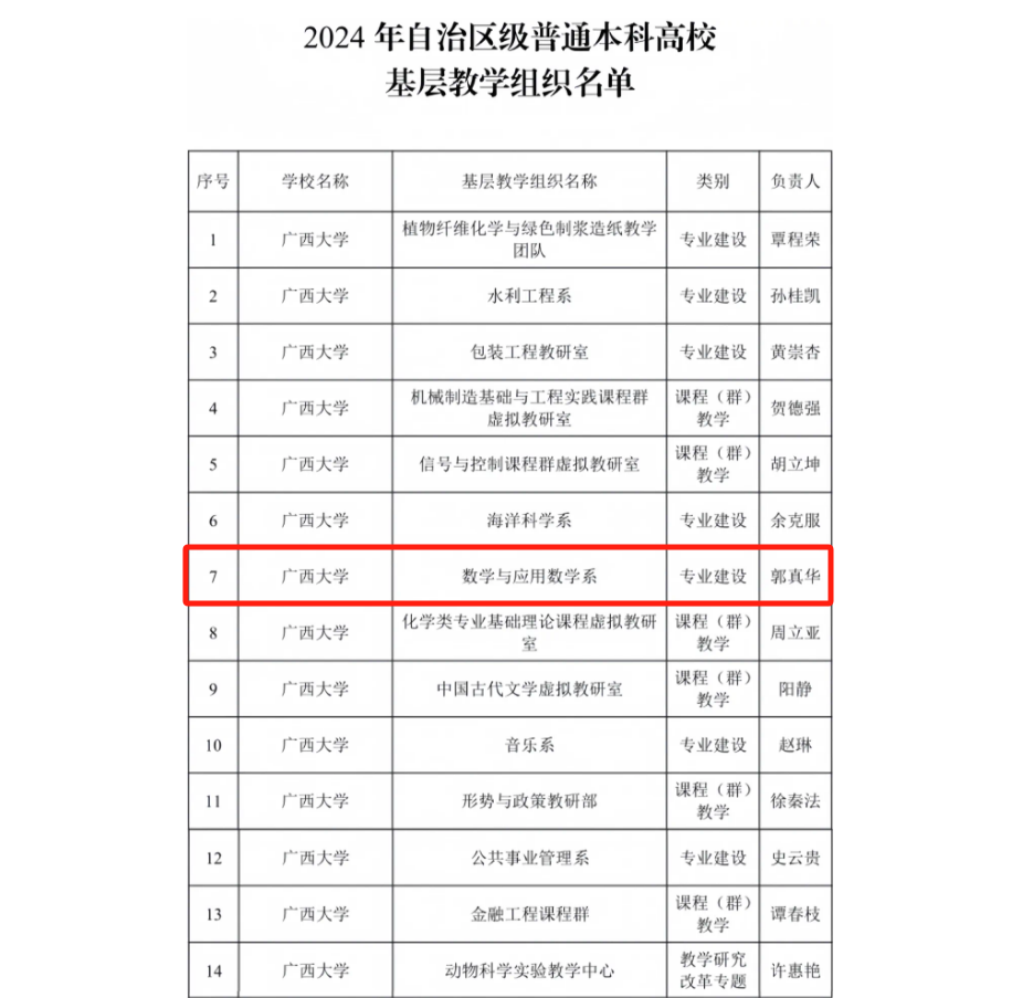 申报的数学与应用数学系获认定为自治区级普通本科高校基层教学组织。