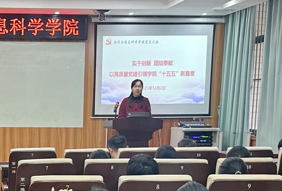 郭真华以“迈向十五五,学科建设再出发”为题,带领教师党员回顾了学院“十四五”建设历程,梳理了取得的成果和存在的短板,并深入分析了存在短板的原因;他还结合正在开展的数学学科广西一流学科验收、博士点合格评估和第六轮学科评估三项重点工作,分析了亚洲色吧