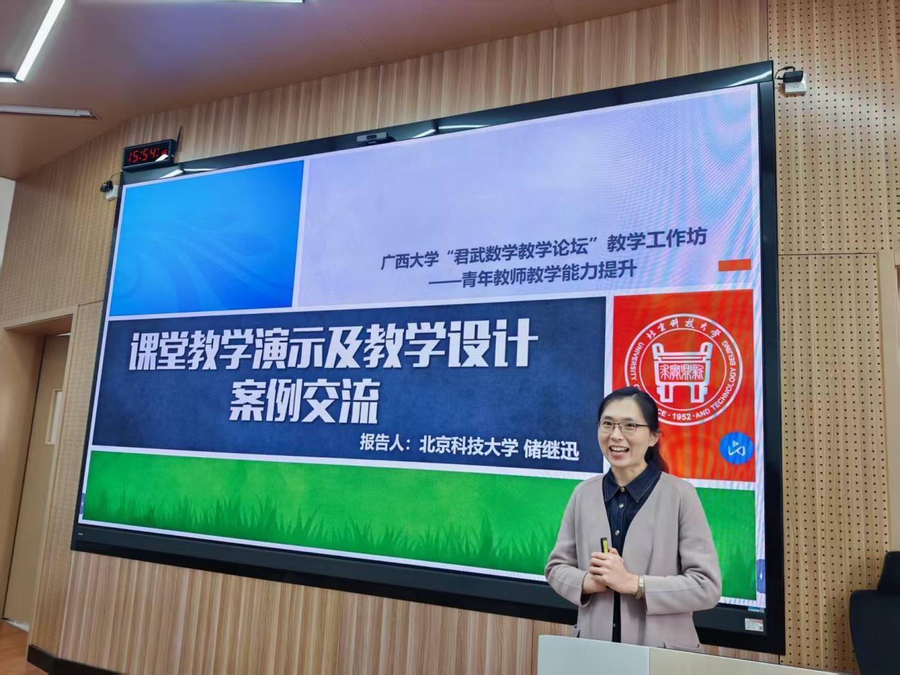 在专题报告环节,张志刚教授结合其带领团队在全国及北京市青年教师教学竞赛中的丰硕成果,分享了数学青教赛团队建设经验与优质教学成果。储继迅教授通过生动的课堂教学示范演示与典型教学设计案例拆解,深入浅出地讲解了课堂优化与教学创新的实用技巧。