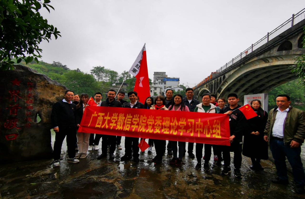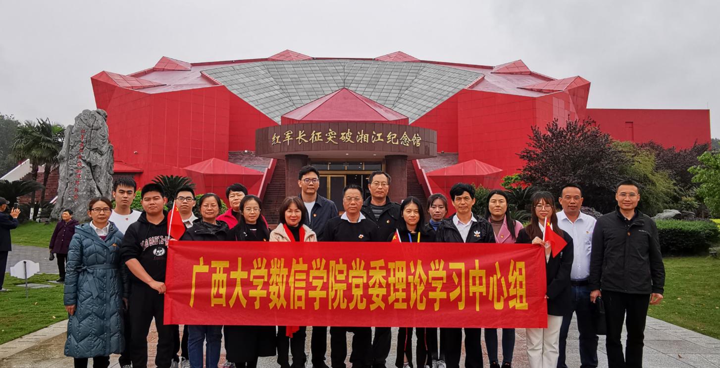 为贯彻落实党史学习教育,继承和发扬党的光荣传统和优良作风,数信学院党委组织院党委理论学习中心组成员及师生代表党员于2021年4月10日—11日两天赴湘江战役发生地桂林全州、灌阳和兴安开展红色教育,重温85年前那场举世瞩目的战役,接受党性和革命传统再教育,感受战役中惊心动魄的感人的故事和伟大的长征精神。