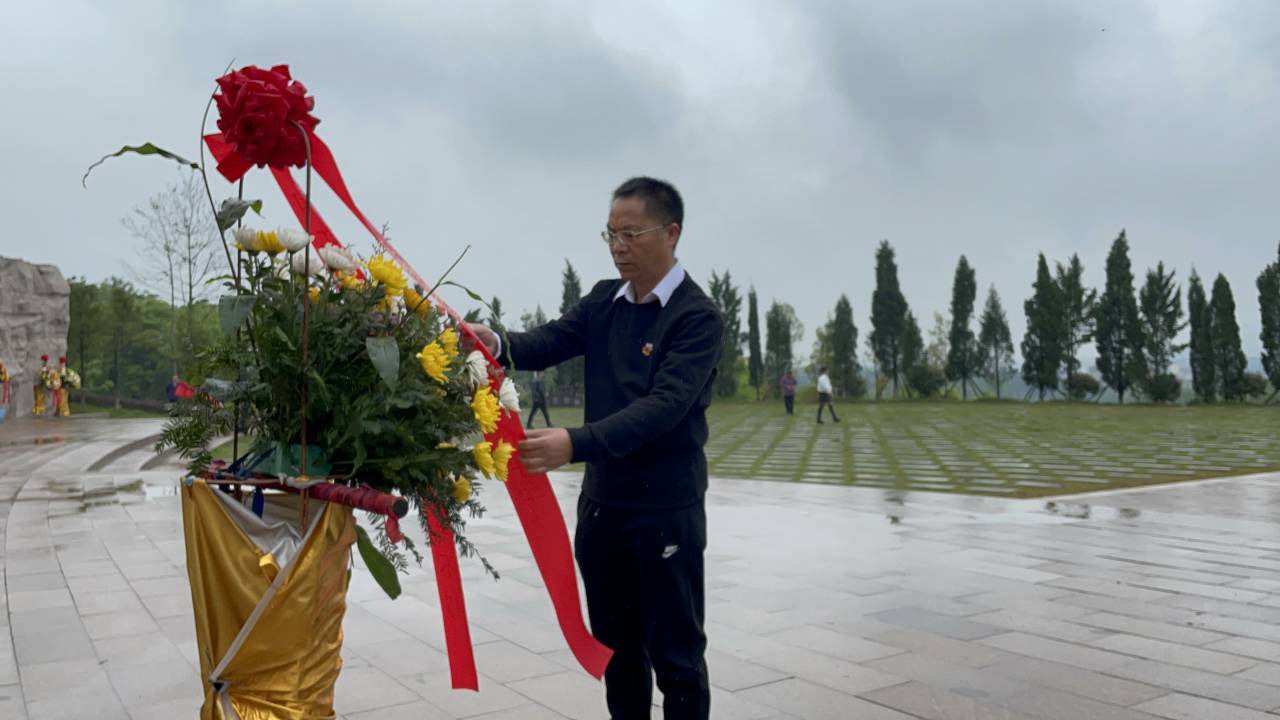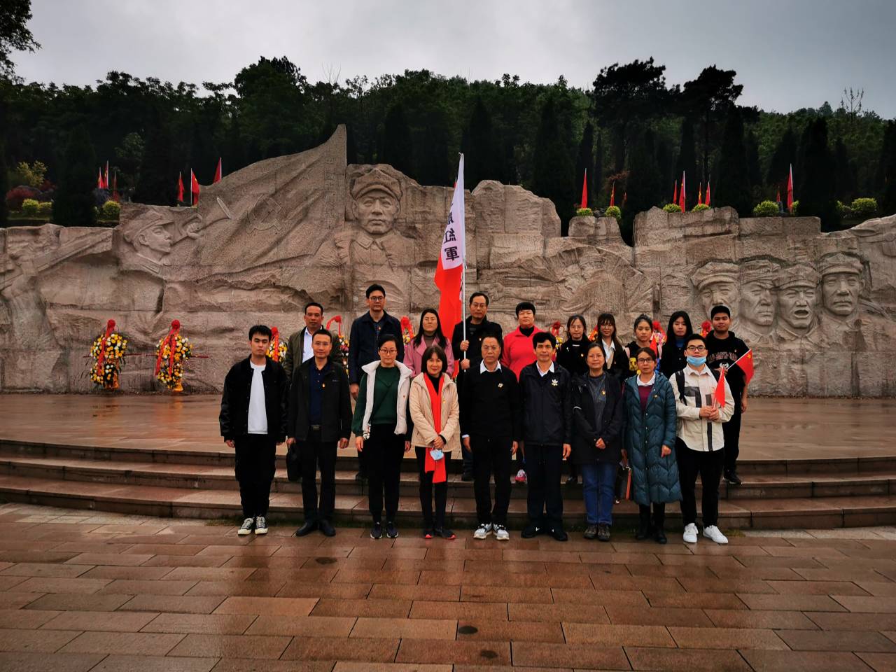 参观完红军长征湘江战役纪念园,大家前往湘江战役脚山铺阻击战纪念碑林—凭吊广场向为祖国和人民英勇献身的革命烈士默哀、献花篮,书记黄建荣整理挽联,行礼鞠躬,以此表达同志们对革命先烈的诚挚敬意,深切缅怀烈士的不朽功绩。