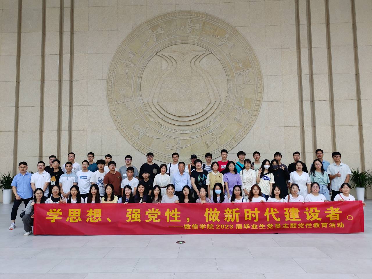 为深入开展学习贯彻习近平新时代中国特色社会主义思想主题教育,教育引导毕业生党员增强组织观念,以健康文明方式告别母校,激励毕业生党员走上新的岗位后继续发挥党员先锋模范作用,在“七一”建党节即将来临之际,6月25日上午,学院党委面向2023届毕业生党员开展了以“学思想、强党性,做新时代建设者”为主题的党性教育活动。数信学院党委书记黄建荣,党委副书记郭海燕出席了活动,学院有毕业生党员的支部书记、全体毕业生党员参加了活动。