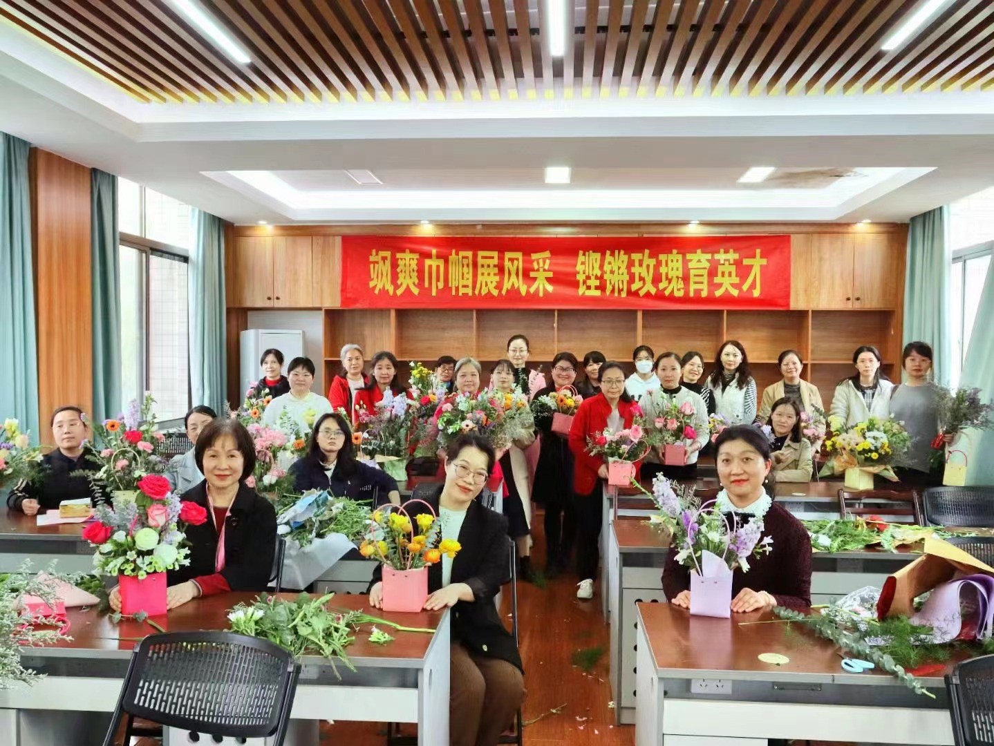 在学院501室举行“飒爽巾帼展风采 铿锵玫瑰育英才”——2024年数信学院女神节插花活动。活动特邀广西艺术学院李林教授授课并进行现场插花实操指导,学院党委副书记唐旭彬主持活动。