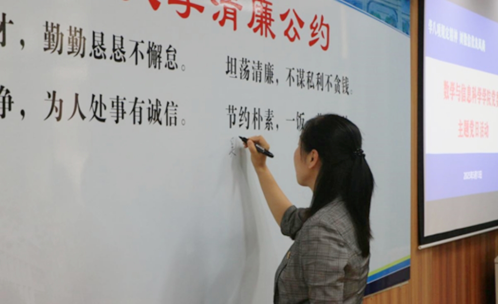 廉洁诚信,清廉公约签名倡议。学院纪委委员、教师党员代表韦琳娜和学生党员代表周培烽分别宣读了“学中央八项规定精神 树数信优良风尚”倡议书,倡议学院师生以实际行动践行中央八项规定精神,从自身做起、从现在做起,共同树立数信优良风尚。随后,参加活动的师生党员依次在亚洲色吧